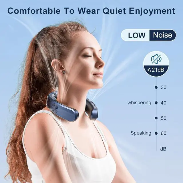 Multiple Speed SettingsThis personal air conditioner cooling fan choose from low, medium, or high speeds to customize your cooling experience. The noise level is also low, so you can wear the fan without being disturbed.Whether you need a gentle breeze or a more powerful blast of air, this neck fan has you covered.