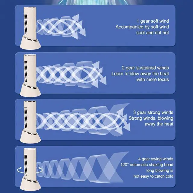 Adjustable Three Speed: The tower desk fan features a bladeless design and offers three adjustable speeds to meet various needs, allowing users to easily customize their airflow preference.