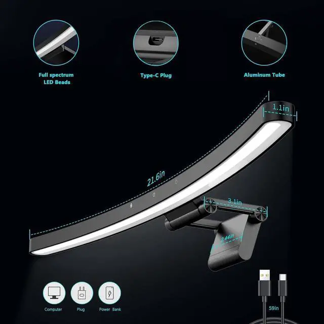 R1000 slightly curved design: With R1000 curvature, the smaller the curvature, the larger the curvature of the screen, and the 550 mm elongated lamp body design can fit displays with different curvatures and thicknesses. The lamp tube and holder are made of an alloy, with fine workmanship and high quality. The ideal choice for children, students and office workers.