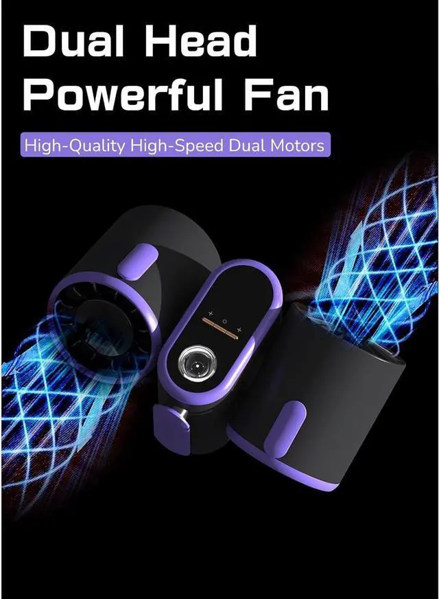 Dual Air Outlets: This Portable Waist Fan features dual outlets generating air both front and back, dual motors provide strong airflow. Not only can be used indoors but also for outdoor camping. With its unique flipping design, it provides wide angle airflow for a total breeze experience.