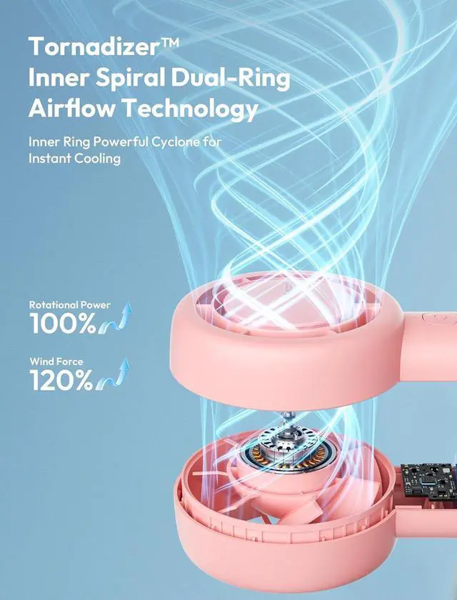 Dual Air Channels: Aecooly Halo 01 Turbo Fan innovative dual wind ring structure delivers stronger, more comfortable airflow, ensuring you experience the refreshing natural breeze in any environment. This unique design maximizes airflow efficiency while enhancing the softness of the breeze, achieving rapid temperature reduction while providing a comfortable breeze experience