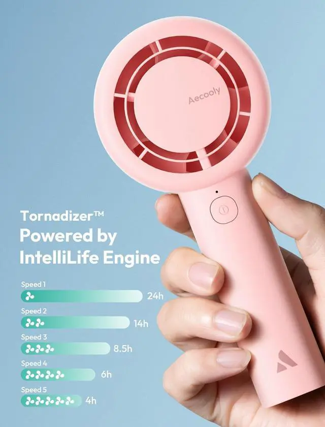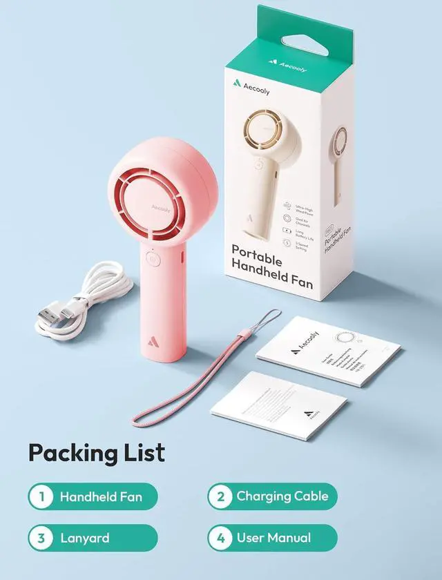 Handheld & Desktop: Aecooly Rechargeable Fan Designed to fit both your workspace and your on-the-go lifestyle, the fan can be used in desktop mode when working or relaxing at home, or easily switched to handheld mode for portable cooling during travel, walks, or outdoor events