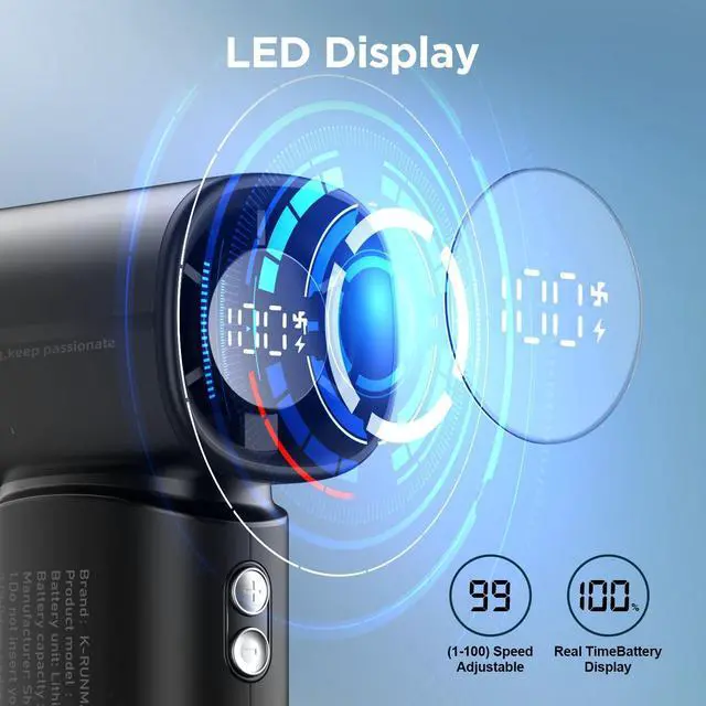 - Elevate your cooling experience with our innovative mini fan featuring an LED digital display.Stay informed at a glance as you effortlessly monitor fan speeds, mode settings, and battery life,and the wind speed from 1 to 100 can be adjusted steplessly,The portable fan can customize speeds , ensuring uninterrupted comfort during various activities such as gardening, traveling, camping, hiking, biking, and concerts