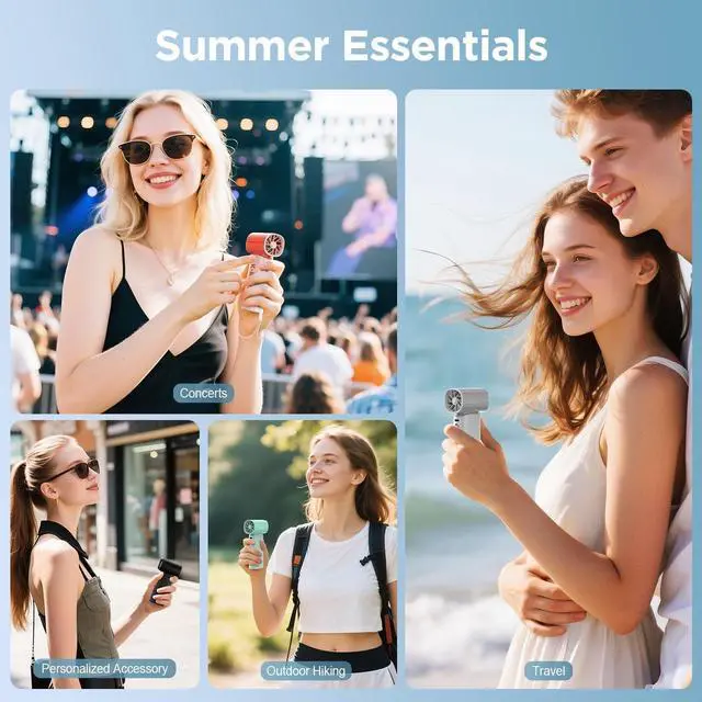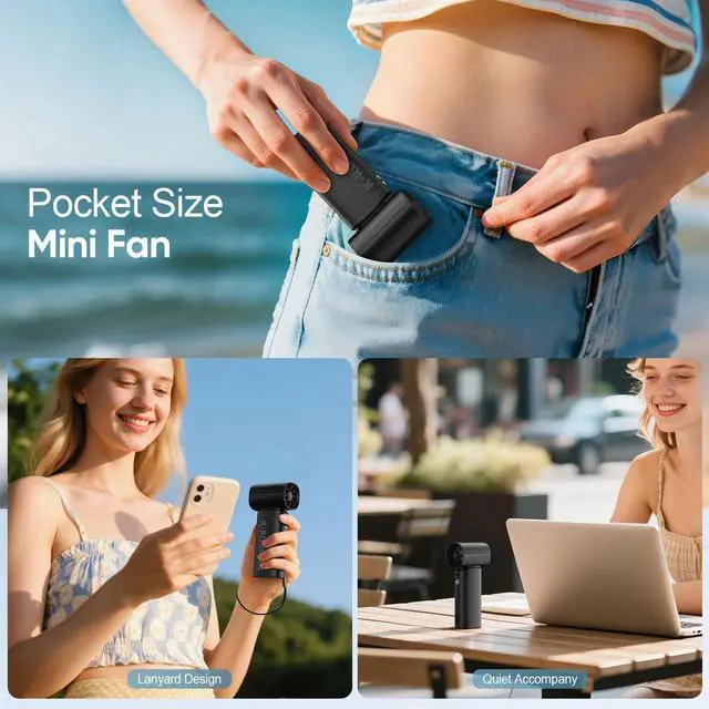 , -Handheld Mini Fan comes with a lanyard and an anti-slip mat at the bottom,you can hang it around your hands as a personal fan when outdoors, and used it as a small desk fan on a flat table.The ultra-small body design and 170g ultra-light small fan allow you to easily put it in your pocket or bag.so no matter where you go, this travel fan portable ensures you'll stay comfortable all day long.
