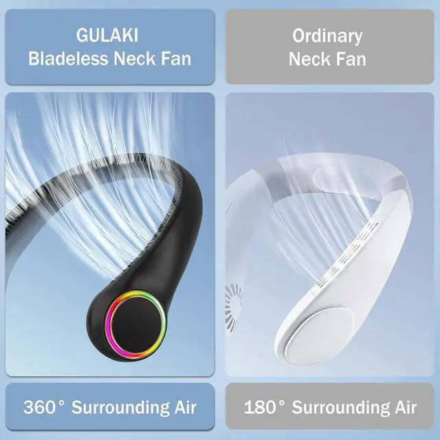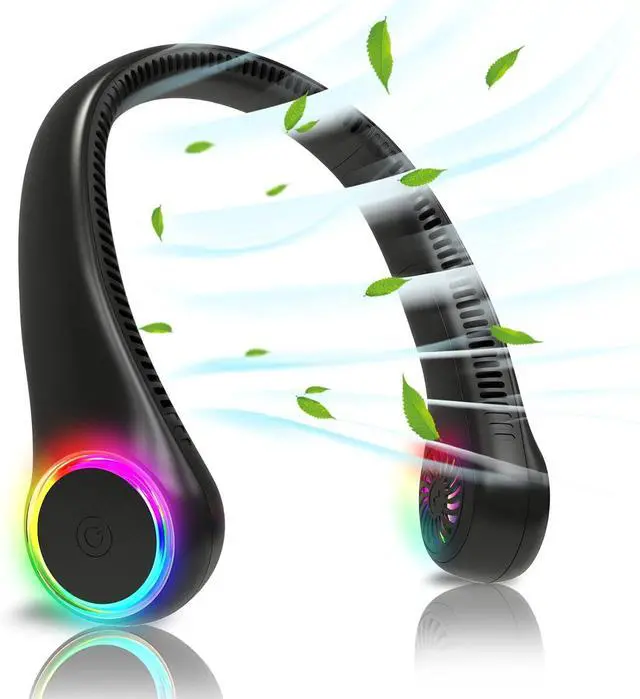 Colorful LED Lighting & Easy-to-Use Button: Elevate your cooling experience with vibrant LED lights integrated into our neck fan, adding a touch of style and visibility during evening use. A remarkably convenient single-button control allows you to effortlessly switch between three adjustable fan speeds and toggle the LED lighting, making it easier than ever to customize your comfort on the go.