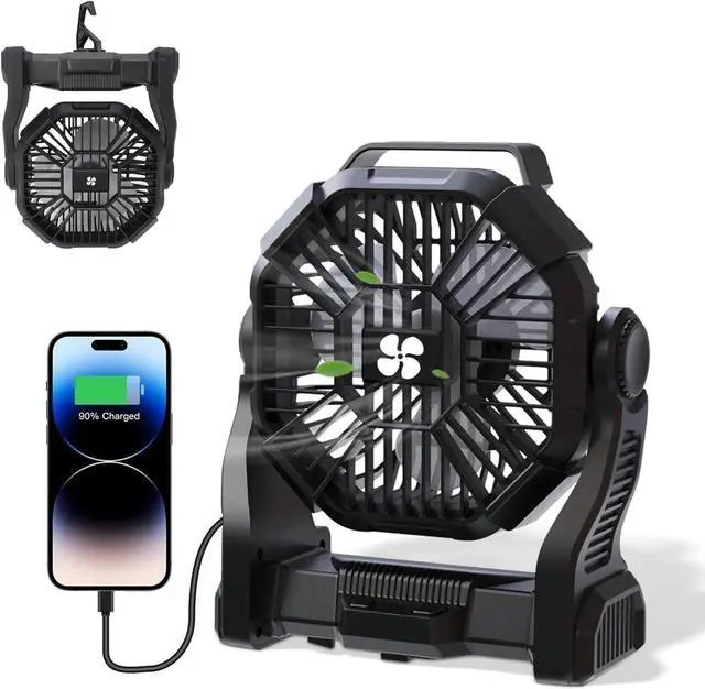 PREMIUM PERFORMANCE: Featuring the latest brushless motor technology and high performance ultra thin fan blades, this fan provides you with excellent airflow and minimal noise. With one USB A and one TYPE C port, it can be used as an emergency power source for cell phones, flashlights and laptops.