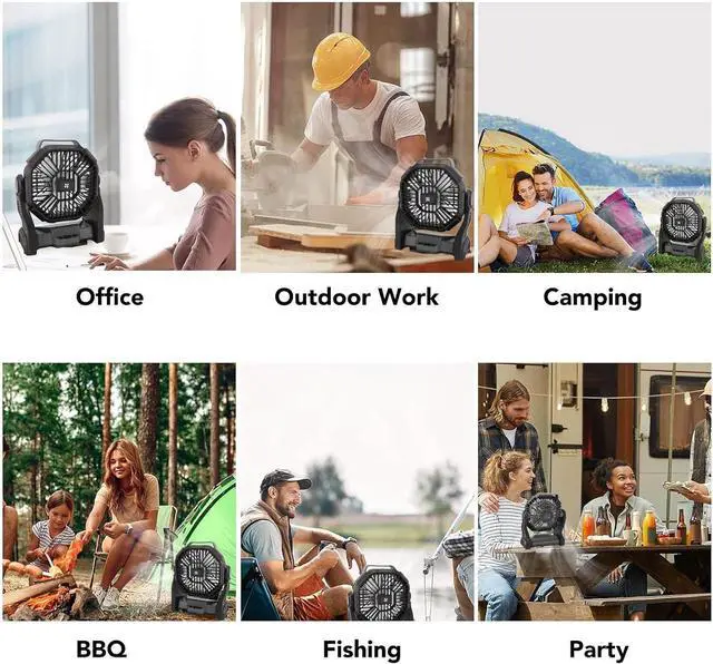 10400MAH CAPACITY BATTERY: This camping fan has a built in 10400mAh rechargeable battery that can work continuously for 836 hours at four wind speeds, providing you with a long lasting cooling experience. In addition, it supports working while charging.