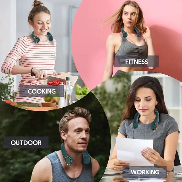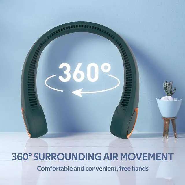 Cool down quicklyPersonal fan with 72 wind outlets and 60pcs twin-turbine fan blades,there are air outlets on both sides and at the rear, which can achieve a 360° omnidirectional air outlet and cooling,neck fan has three speeds to meet different needs,portable neck fan keeps you cool anywhere.