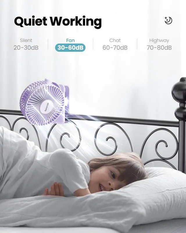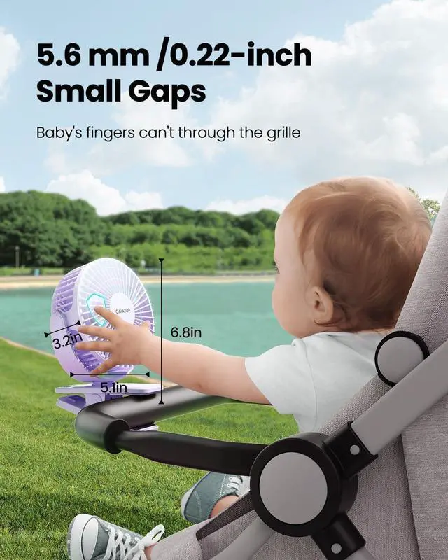 Also Safe for Baby: The mini clip fan only has 5.5mm gaps, so it will protect the infant's little fingers from entering; While keeping toddlers safe, still works quietly and provides powerful wind