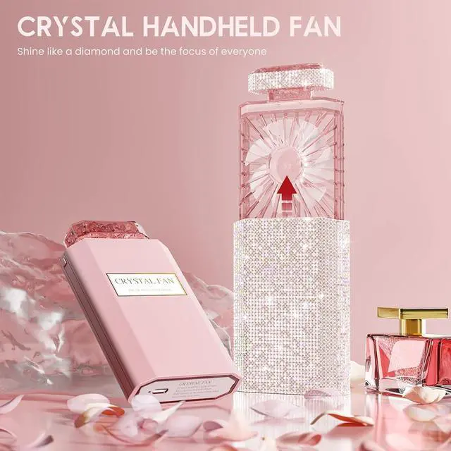 PORTABLE DESIGNPortable personal fan has like perfume bottle, pull-out designeasily put in your handbag or pocket. This handheld fan so lightweight only weighs 125g. Easy carried for you to work, travel, school and keep cool whether outdoors or indoors in summer