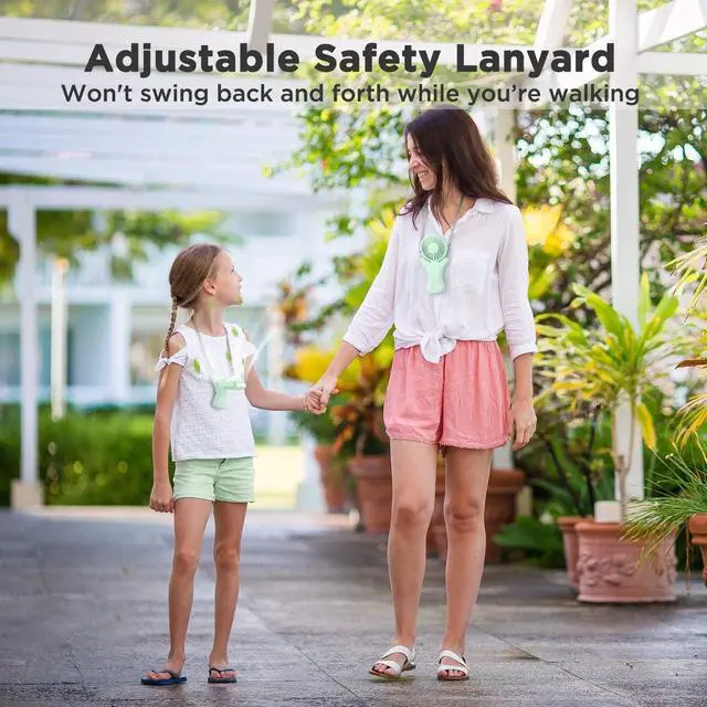 Hands-Free Fan: Just hang the fan around your neck and enjoy a cool breeze. It won't swing back and forth or hurt your neck while you walk. A must-have for travel, outdoor