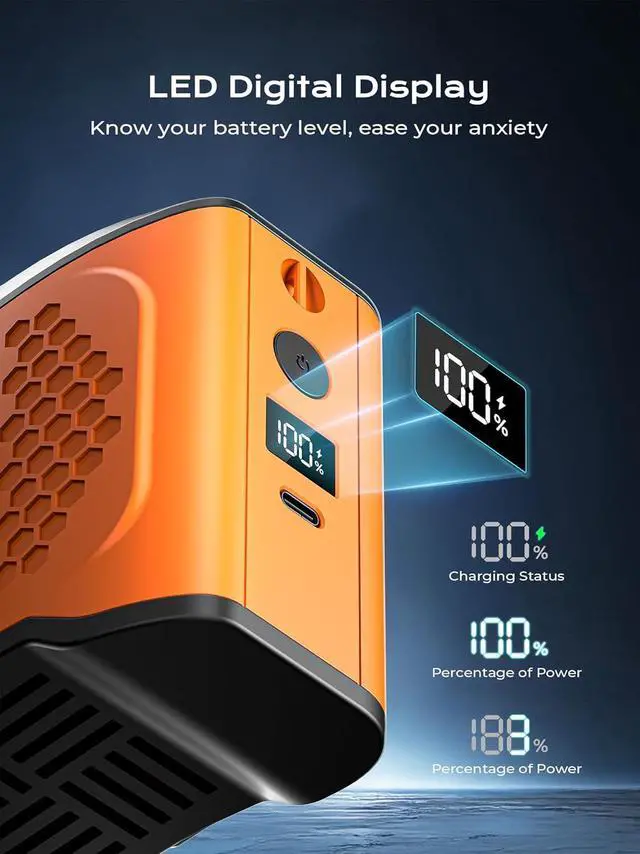 22H Extended Runtime & Smart LCD DisplayTrack real-time battery life (0-100%) and speed settings on the clear LCD screen. The fans memory function saves your last used speed, so it restarts exactly where you left off.