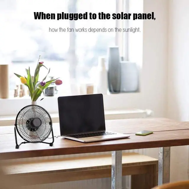 SOLA RPANEL: When plugged to the solar panel, how the fan works depends on the sunlight. When the sunlight is strong, the fan works fast. When the sunshine is not strong enough, the fan may work low or even does not work.
