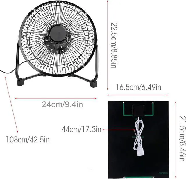 USB PORT: The fan runs when plugged to the solar panel. And it can be used alone by plugged into computer USB port.