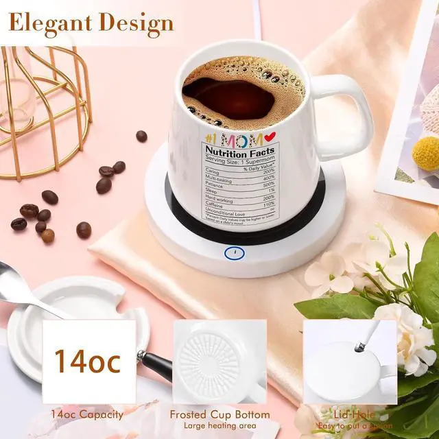 Complete Gift Set With Multi-Scene Use:Includes 14oz (400ml) premium ceramic mug with non-slip silicone base + mug warmer. The coffee mug warmer is approx 4.57 x 6.1 x 0.87 inches/ 11.6 x 15.5 x 2.2 cm. Perfect for home, office, or cafe-style moments.Best mothers day gifts with elegant keepsake box and exquisite gift card.