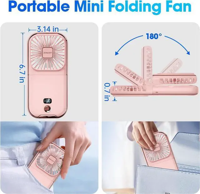 Foldable & Portable - The compact design and multifunctional can meet your various needs of fan. Folded like a powder box, unfolded like a 6.7" cell phone. It can easily fit in your pocket. It can Bring you wind at any time and place.