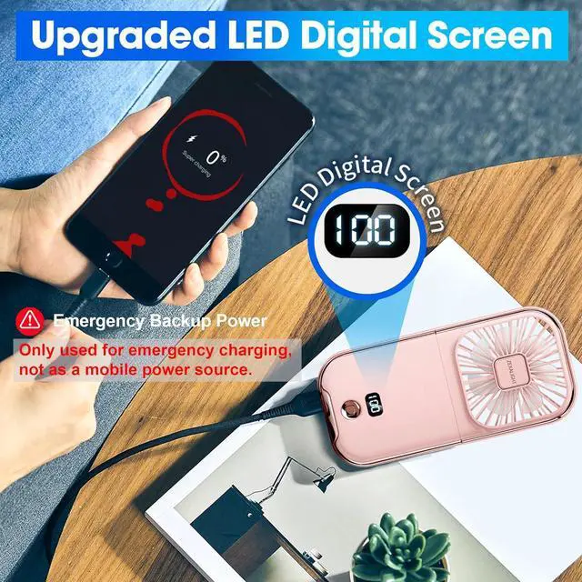 Emergency Backup Power - Battery operated fan, with built-in 3000mAh high-capacity battery. It can be used as an emergency backup power to charge your phone.