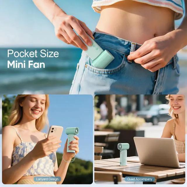 , -Handheld Mini Fan comes with a lanyard and an anti-slip mat at the bottom,you can hang it around your hands as a personal fan when outdoors, and used it as a small desk fan on a flat table.The ultra-small body design and 170g ultra-light small fan allow you to easily put it in your pocket or bag.so no matter where you go, this travel fan portable ensures you'll stay comfortable all day long.