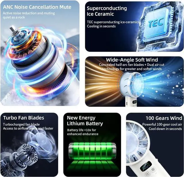 [100 Gear Speed wind & Smart LED Display] - The stepless 100-level adjustable wind speed and one-touch buttons for the cooling/wind modes make it more convenient to use. The high-definition digital display allows you to easily check the current mode and the battery level. Customize your comfort level in seconds gentle breeze or powerful cooling.