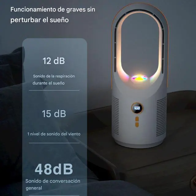 Improved Airflow: Arched design integrates three-dimensional supply increasing 60% ventilation. Bladeless effect thanks to air compression for continuous comfort