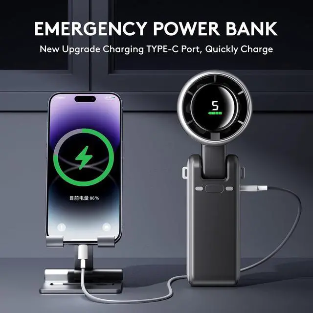 LED Digital Display & Power Reminder- Handheld Turbo Fan is equipped with a HD digital display screen, which can show the real-time gear and remaining battery power. Can remind you when you need to charge the fan, Make sure you have a cooling companion on every trip.