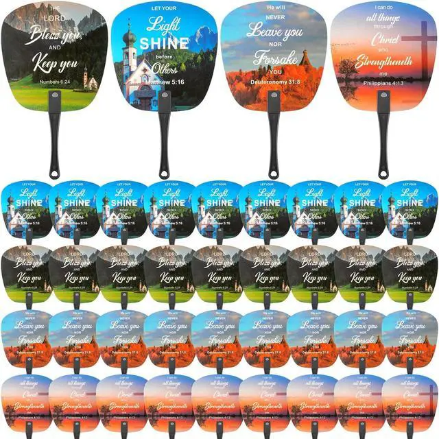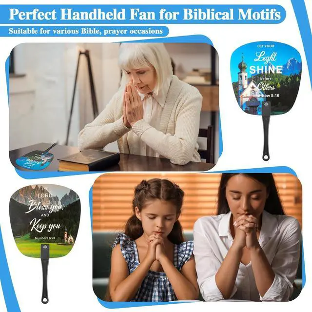 Church Decorations: this bible fan is printed with bible theme pattern and bible sayings, can be applied as a handheld fan to participate in church, showing your joy and enthusiasm; It is also a good choice to decorate your desk or bedroom