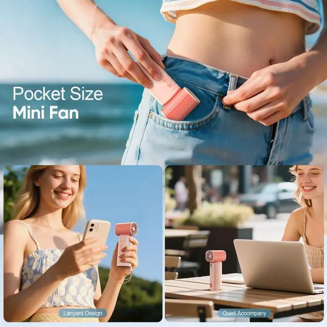 , -Handheld Mini Fan comes with a lanyard and an anti-slip mat at the bottom,you can hang it around your hands as a personal fan when outdoors, and used it as a small desk fan on a flat table.The ultra-small body design and 170g ultra-light small fan allow you to easily put it in your pocket or bag.so no matter where you go, this travel fan portable ensures you'll stay comfortable all day long.