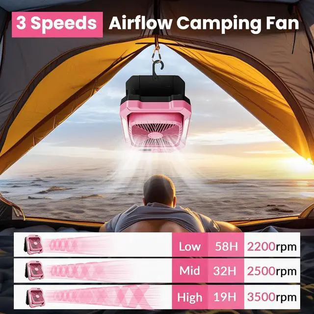 Massive Cooling Power & Long-Lasting Battery: Enjoy powerful airflow from the 11-inch fan with three adjustable speeds (high, medium, low). The built-in 26800mAh battery provides up to 58 hours of runtime on a single charge (low speed), ensuring you stay cool all day and night