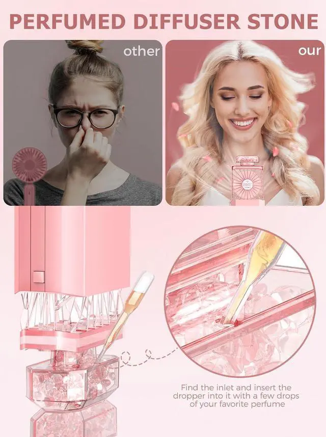 FRAGRANCE DESIGNThis mini handheld fan diffrent with other handheld fan, our mini fan has a design for installing incense tablets, which not only keeps you cool, but also makes the air around you scented