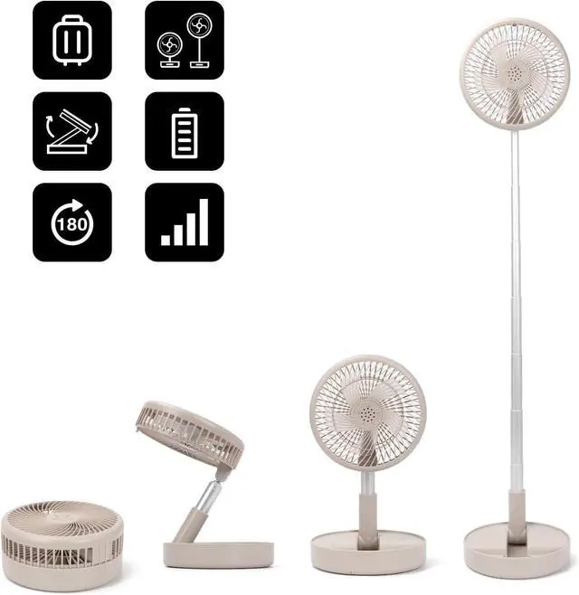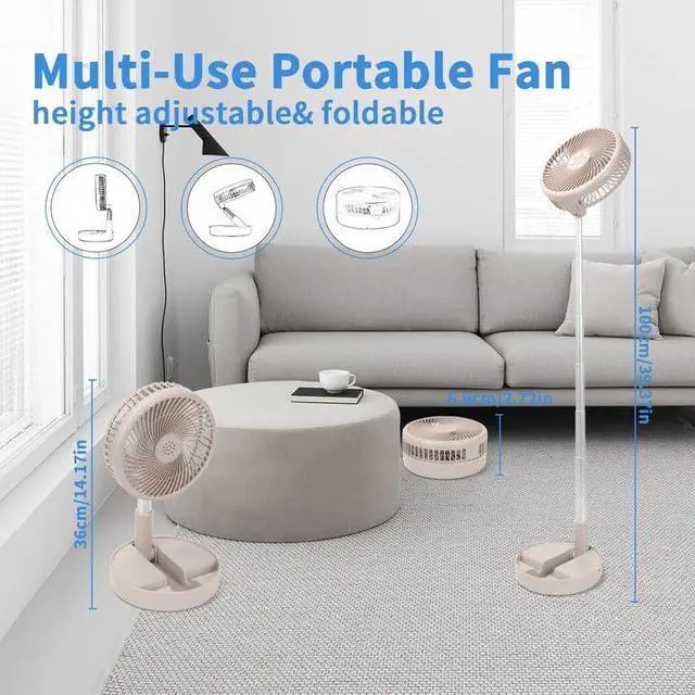 Multifunctional 3-In-1 Design: This multifunctional folding electric fan can be used as a floor fan, a folding stand fan or a USB desk fan. Its foldable design makes it easy to carry. With its unique folding telescopic design, this battery-powered stand fan effortlessly folds down to a small size for easy storage. Meanwhile, the height of the portable standing fan can be adjusted from 3.54 inches to 39.37 inches (90-1000 mm), so electric fan foldable can easily meet your different height requirements