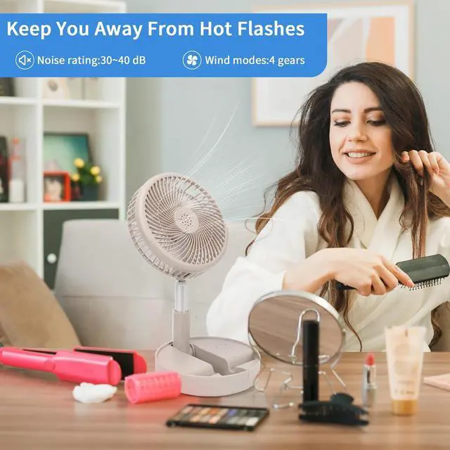 180° Adjustable Angle: The tilt angle of the fan head can be adjusted 180 degrees, so by changing the angle of the USB fan, you can easily direct airflow exactly where you need it. When folded into compact desktop mode, the foldable fan portable measures 7.72*7.72*3.54 inches (19.6*19.6*9 cm)