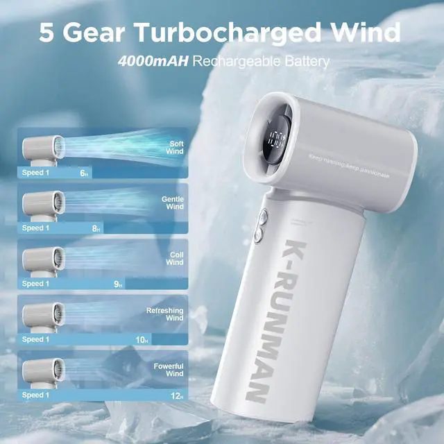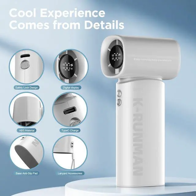 K100 Powerful Portable Fan has 5 gear turbo wind for potent cooling. high-speed three-phase brushless motor, with a maximum wind speed of up to 10m/s. Maximum speed is 40,000 rpm, which is 3 times that of ordinary handheld fans. Perfect for relieving the heat during hot journeys.