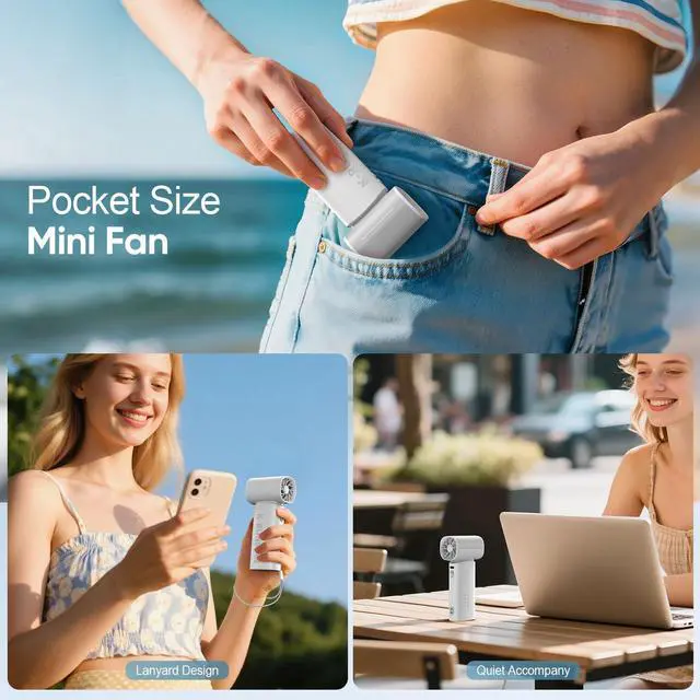 , -Handheld Mini Fan comes with a lanyard and an anti-slip mat at the bottom,you can hang it around your hands as a personal fan when outdoors, and used it as a small desk fan on a flat table.The ultra-small body design and 170g ultra-light small fan allow you to easily put it in your pocket or bag.so no matter where you go, this travel fan portable ensures you'll stay comfortable all day long.