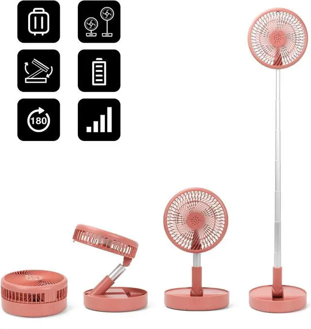 Multifunctional 3-In-1 Design: This multifunctional folding electric fan can be used as a floor fan, a folding stand fan or a USB desk fan. Its foldable design makes it easy to carry. With its unique folding telescopic design, this battery-powered stand fan effortlessly folds down to a small size for easy storage. Meanwhile, the height of the portable standing fan can be adjusted from 3.54 inches to 39.37 inches (90-1000 mm), so electric fan foldable can easily meet your different height requirements