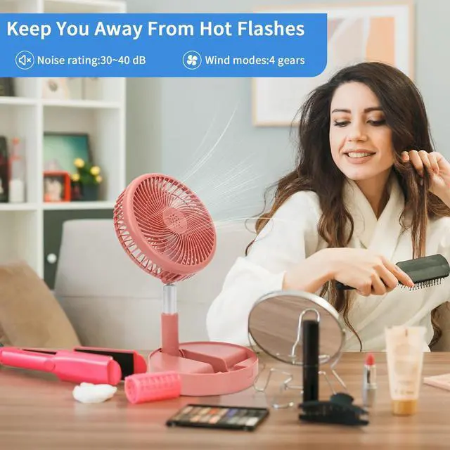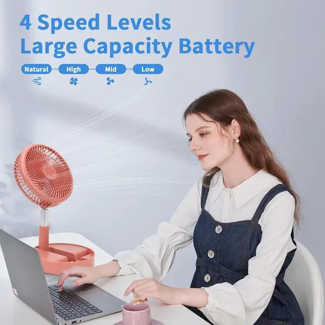 • Battery-Powered Desktop Floor Fan: Powered by a built-in 7200mAh rechargeable battery, this rechargeable fan has a changeable mode that allows the foldable e