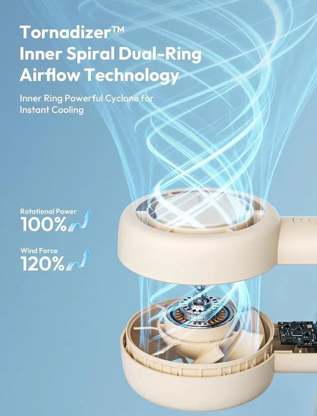 Dual Air Channels: Aecooly Halo 01 Turbo Fan innovative dual wind ring structure delivers stronger, more comfortable airflow, ensuring you experience the refreshing natural breeze in any environment. This unique design maximizes airflow efficiency while enhancing the softness of the breeze, achieving rapid temperature reduction while providing a comfortable breeze experience