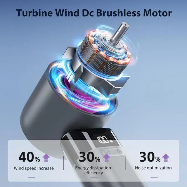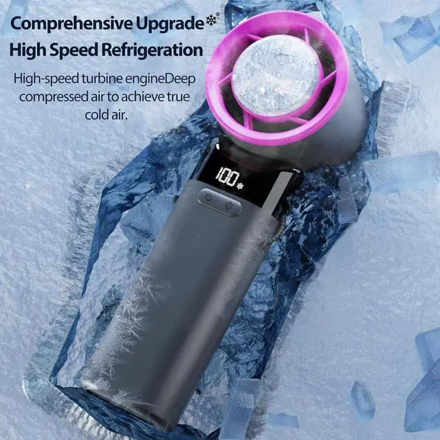 Ultra-powerful Brushless MotorThe hand held fan's high-speed turbine engine and 3000mAh battery combination greatly increases wind speed, power and range. It is powerful enough to support the fan blades at high speeds, generating strong winds up to 10,000 RPM and a maximum wind speed of 6m/s