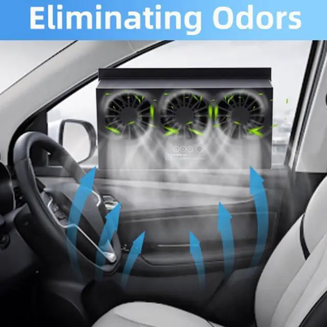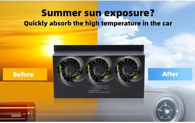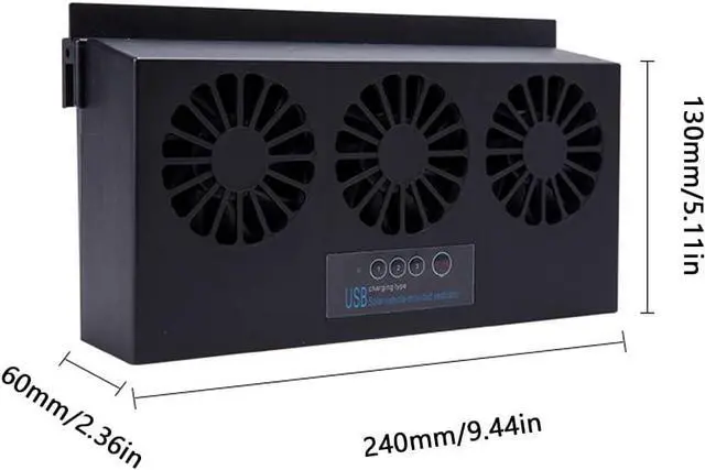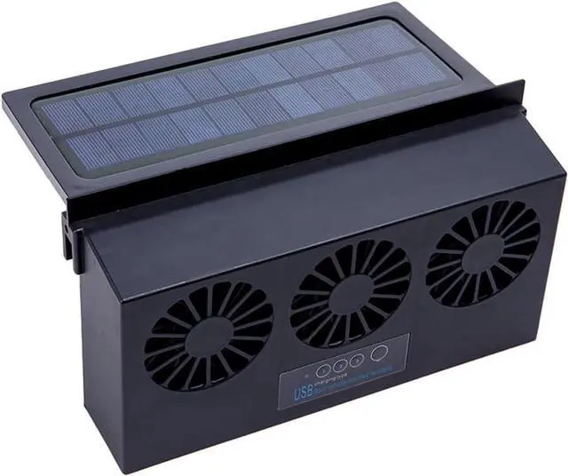 Energy Saving: Polycrystalline solar panels allow the battery to be charged without a power source. The usage of solar cells can be independently controlled by solar power and battery switches. The car exhaust fan with three air outlet is energy saving and easy to use