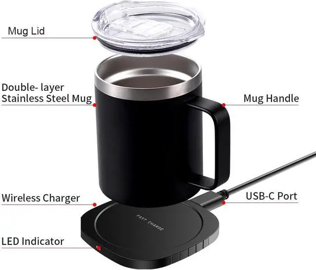 Thermal Insulation and Safe Thanks to the inner core induction heats up, the cup body and charger base do not get hot. The temperature control chip has an overheating protection, safe and comfortable to use.
