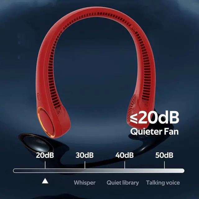 Ultra-quiet and comfortThe noise hands free bladeless fan produces when it works is less than 20 decibels, and it is quiet enough that it will not interfere with you,personal neck fan is made of food-grade TPE material that is better than ABS, and it is made of better material, which is more comfortable, durable and safe to wear.