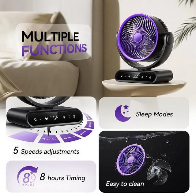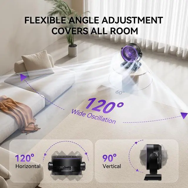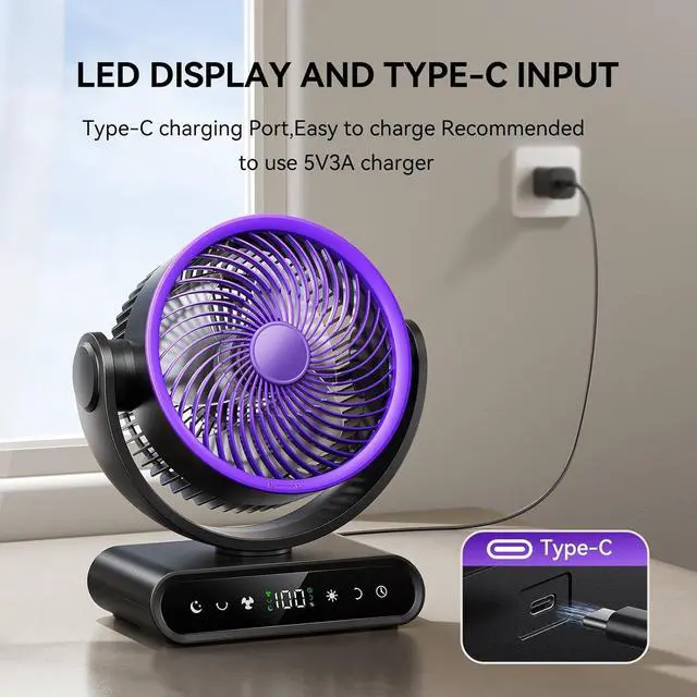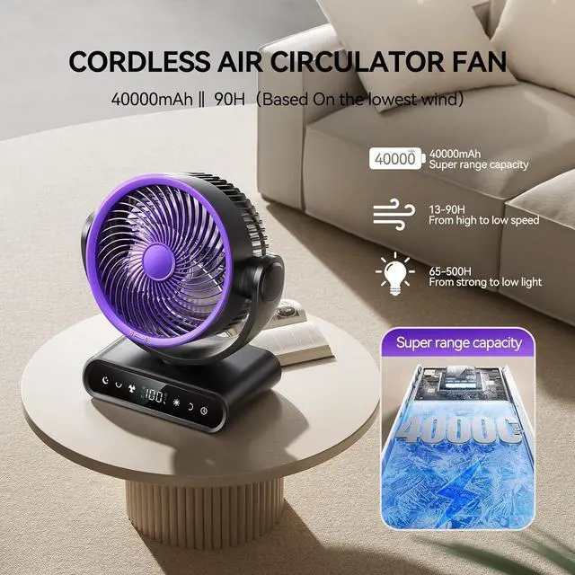 Powerful Battery:Built-in a 40000mAh capacity battery,don't worry power outage,which makes table fan last running.brings strong motors to personal fan.