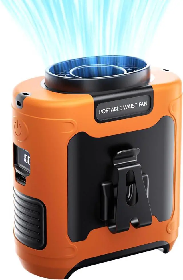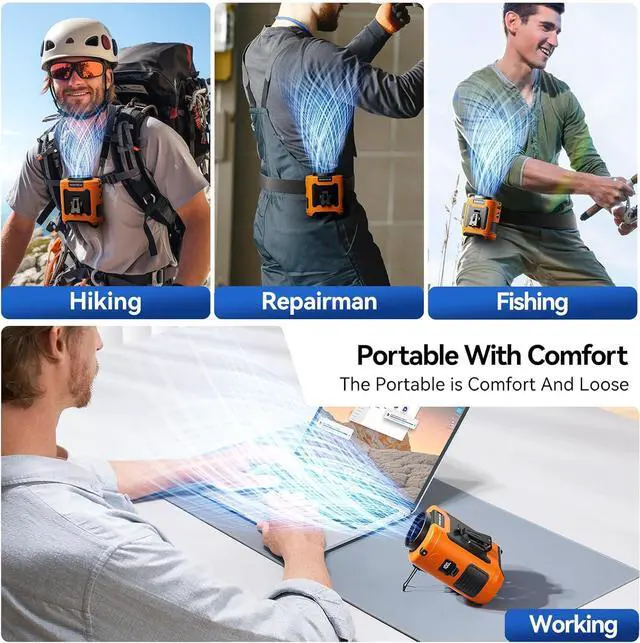 Portable Waist Fan with 24-Hour Long Working Time: With a 10000mAh battery, this outdoor portable waist fan provides up to 24 hours of continuous cooling.