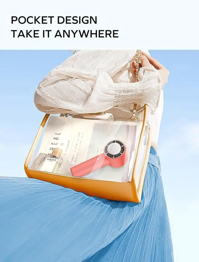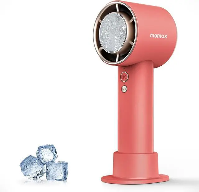 Pocket Fan: Momax mini fan handheld has portable size 2.32"D x 2.28"W x 6.14"H, weight 6.8oz. Momax 2024 Upgrade Ice Cooling Fan great for the summer. Cools you down and stays elegant anywhere, anytime!