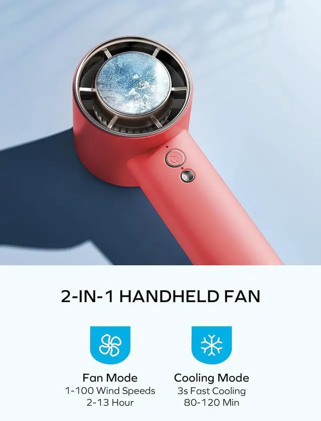 13H Super Long Standby: Portable handheld fan pocket fan with built-in 3000 mAh large-capacity battery, Which life can up to 780 mins with breeze wind. Even work with the ice-cooling mode turning on, still up to 120 mins. (Battery life depends on speeds you choose)