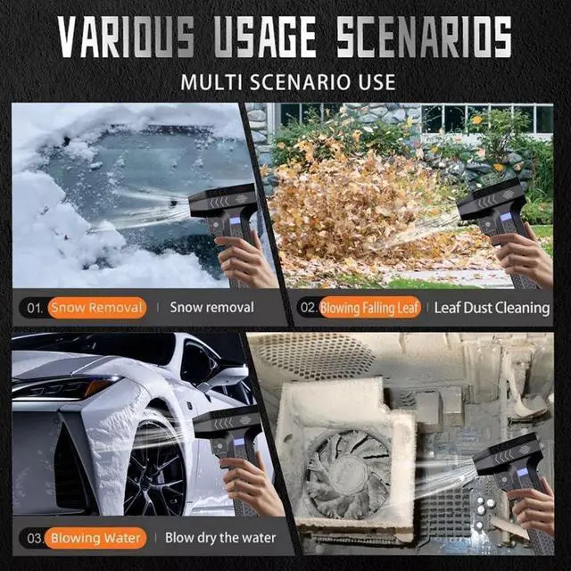Multifunctional design suitable for removal, snow blowing, camping firestarting, and as a handheld bank with flashlight.