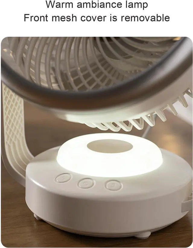 TWO TYPES OF BRIGHTNESS:Portable Air Circulator Fan is designed with a warm ambiance light that offers two brightness levels. This feature not only provides functional lighting but also helps to create a cozy atmosphere, making it for home settings.