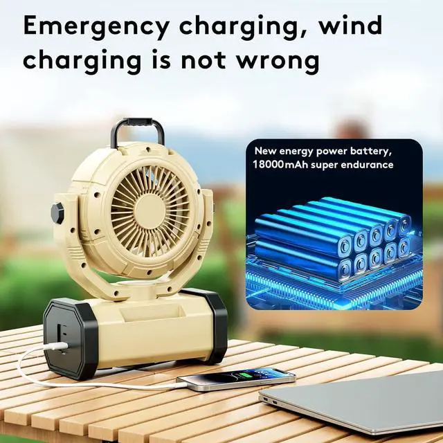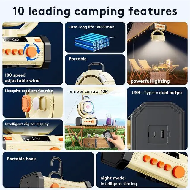[Multipurpose Performance] Designed for diverse environments, this fan serves as both a cooling device and illumination source with its integrated led lantern. the 18000mah rechargeable lithium battery ensures long-lasting operation, while the sleep mode automatically turns off lights for undisturbed rest. perfect for travel, emergencies, or daily home use.