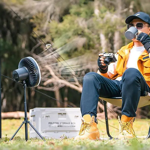 This three-legged outdoor fan with colorful lights is a must-have for any camping trip or outdoor adventure