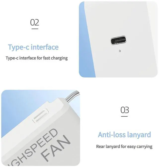 Using advanced hair dryer motor and tunnel technology for cooling performance, USB rechargeable handheld fan featuring powerful 9m/s high-speed airflow to reduce instant cooling