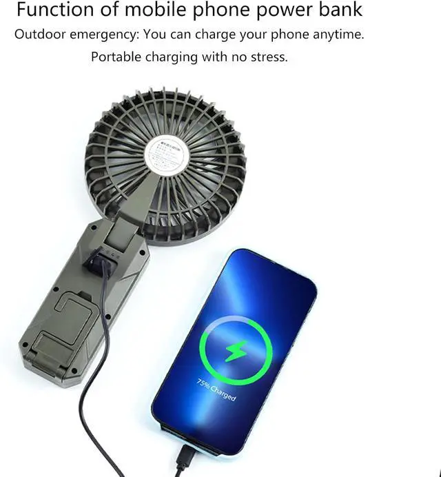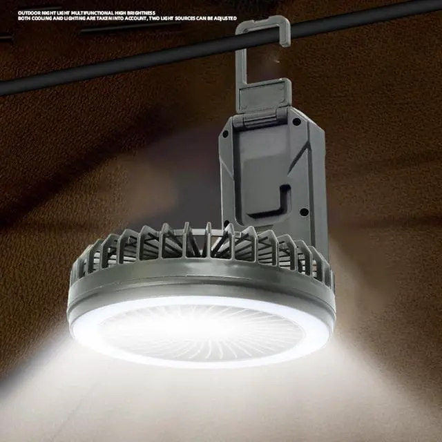This camping fan is a versatile device that combines a fan and a camping lamp for both lighting and cooling